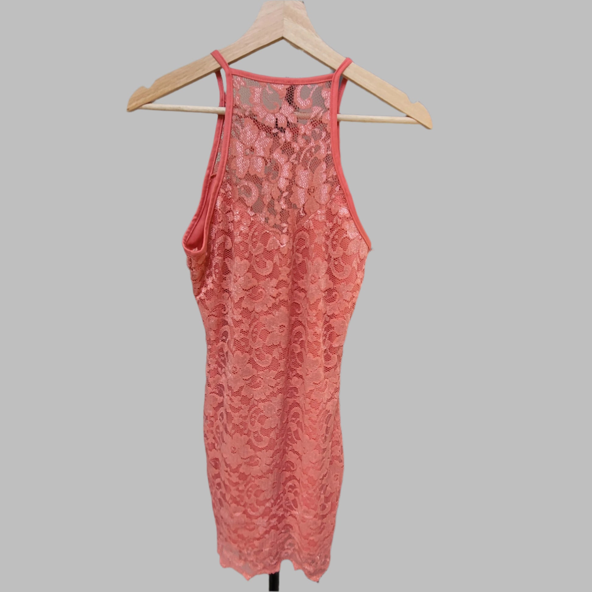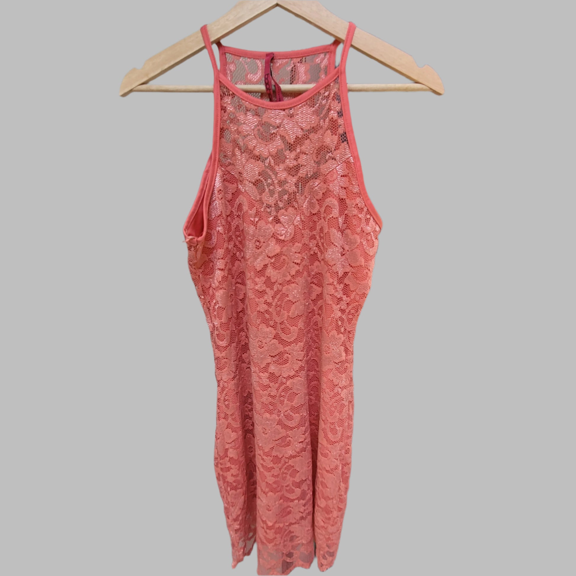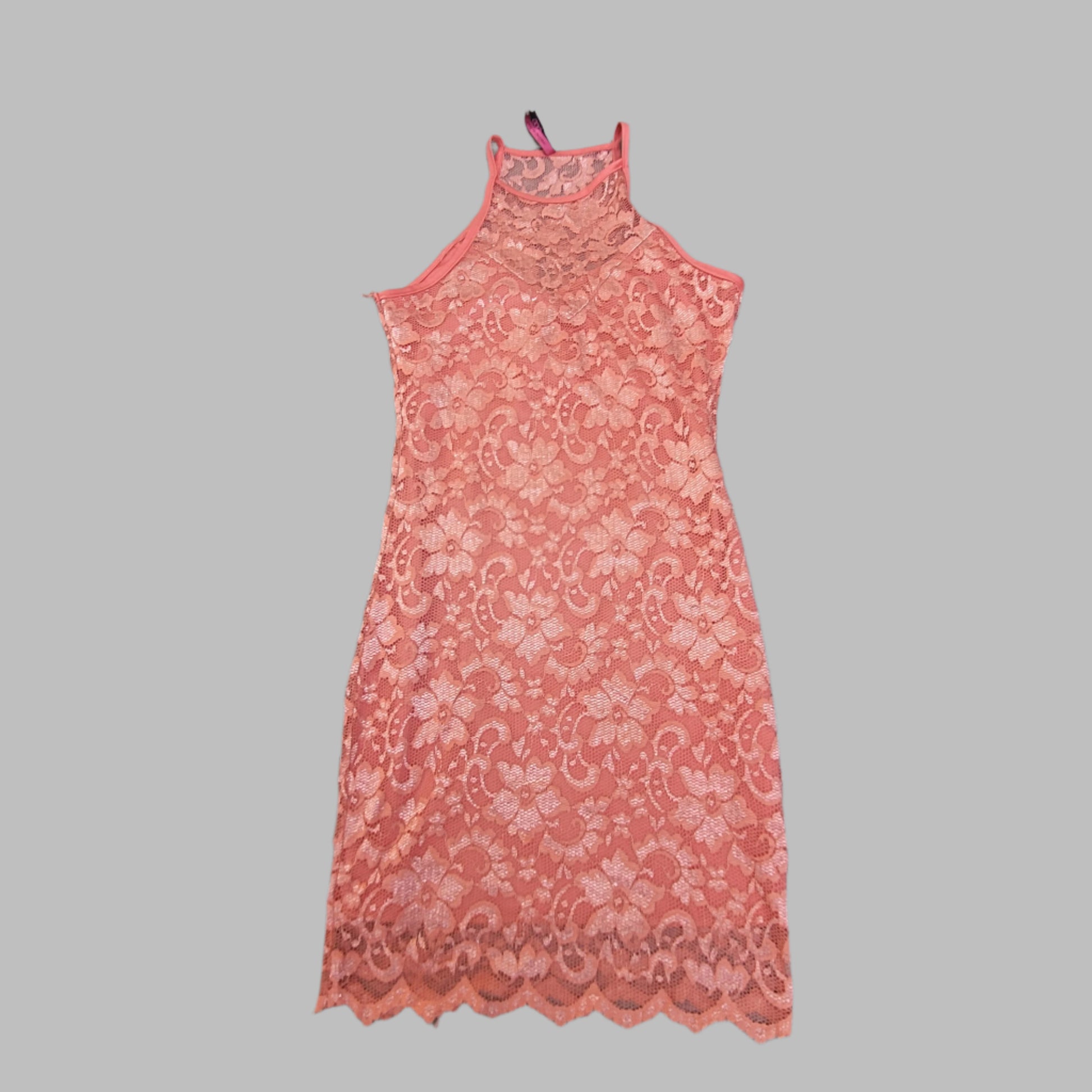 Pink strappy dress. Lace design